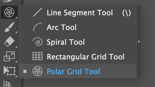 Click and hold the line segment tool in the toolbar. Select the Polar Grid Tool.